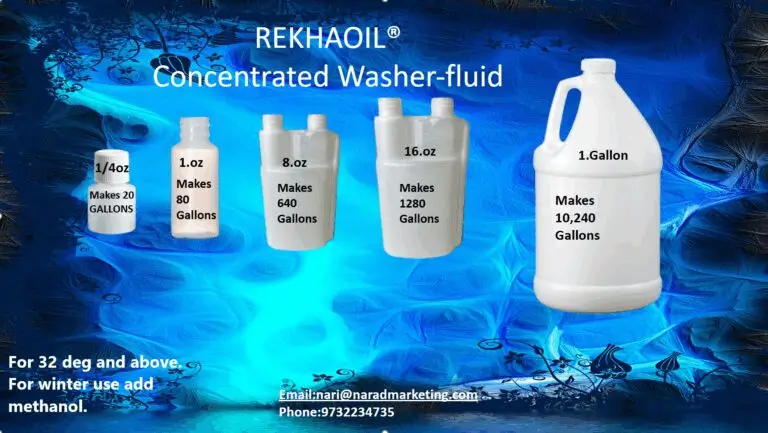 Rekhaoil®Ultra Concentrated Windshield washer-fluid 1/4 oz make 20 gallons of washer-fluid SAVE MONEY BUY DIRECTLY FORM THE MANUFACTURER Quick Lubes. Car washes. Detail Shops. Dealerships. Repair shops Truck Stops. Make your own windshield washer-fluid and save time and money. One ounce of our concentrated liquid makes a gallon of blue Windshield Washer Fluid! Specially formulated…