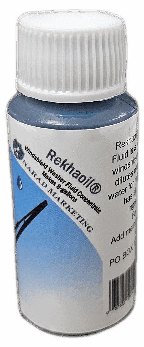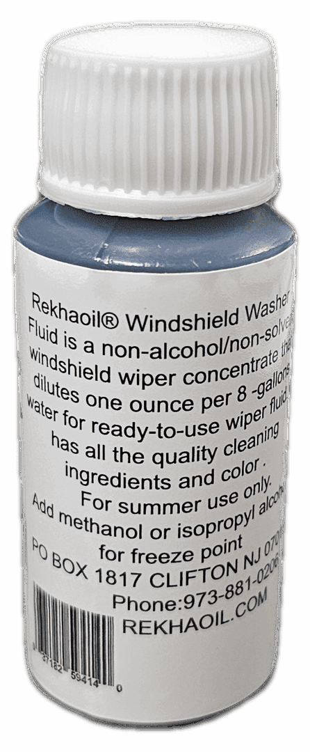 Rekhaoil®Concentrate Windshield Washer. Add 1 ounces to a 8-gallon water for ready-to-use wiper fluid. It has all the quality cleaning ingredients and color that your customers expect. When used as directed, will not dye paint or vinyl on cars and trucks. Protection for above 32°F for winter or freeze protection add methanol.